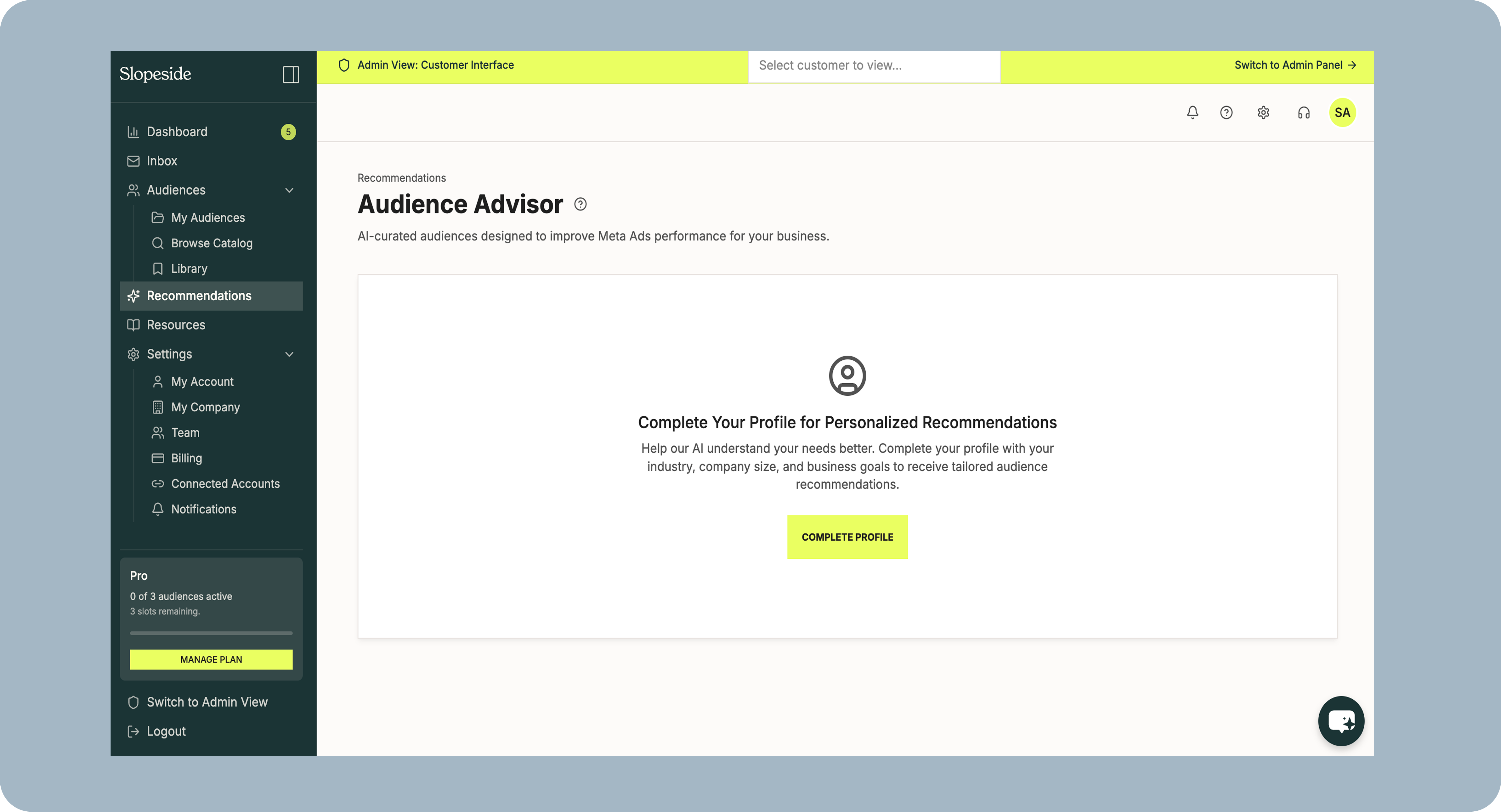 Slopeside adds an external audience intelligence layer by identifying users who are actively researching or showing intent around specific topics outside of Meta, then making those audiences available for activation directly inside your Meta Ads account.